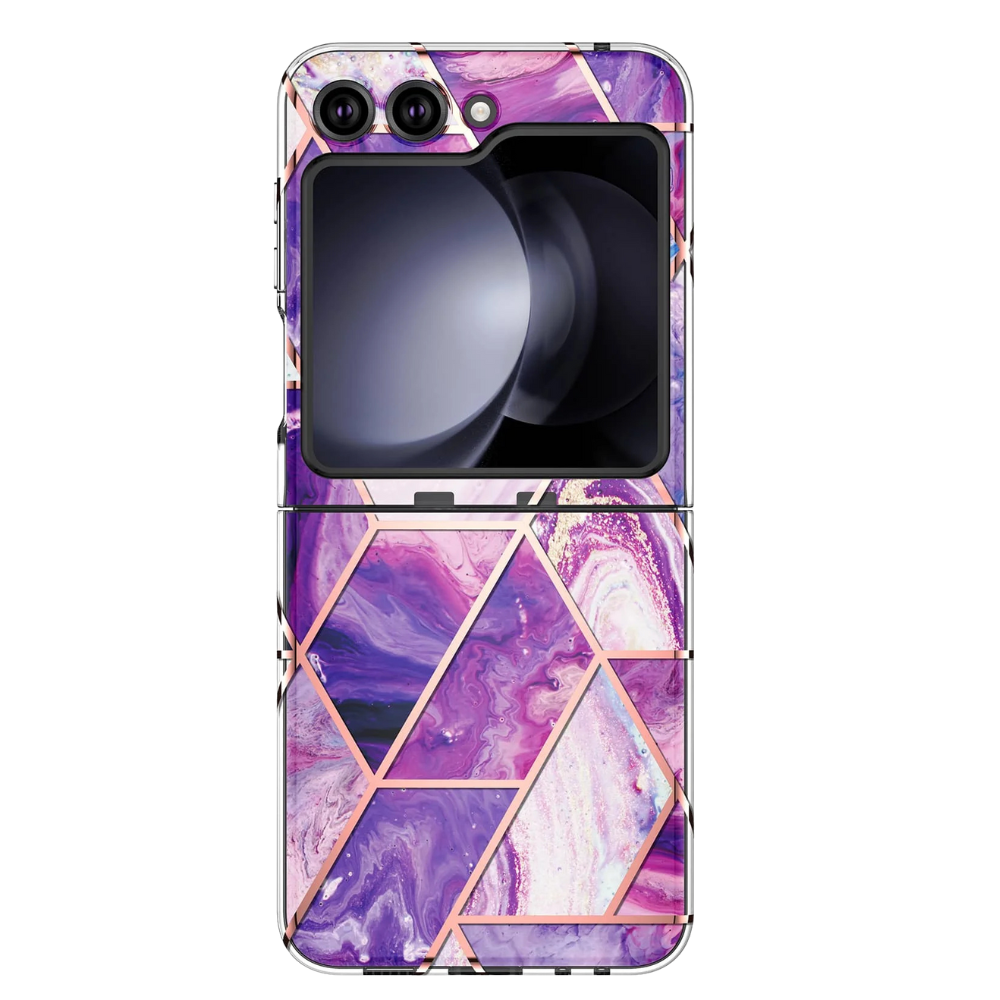 The Gravis Plated Silicone Case takes your Galaxy Z Flip and gives it the style and security it deserves. With a luxe marble geometric design wrapped in sleek metallic plating, this case brings head-turning aesthetics together with full-body protection—all in a form that complements your phone’s iconic fold.